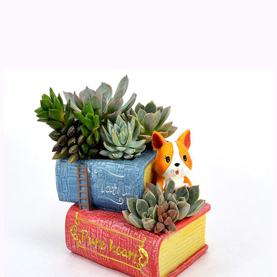 Brotherhood Enterprise Resin Pots Small Puppy with Books Design Cute & Trendy Perfect Cute Dog Reading Book Succulent Pot for Study Table Decoration Office Table Lovely Miniature in Cute Pot
